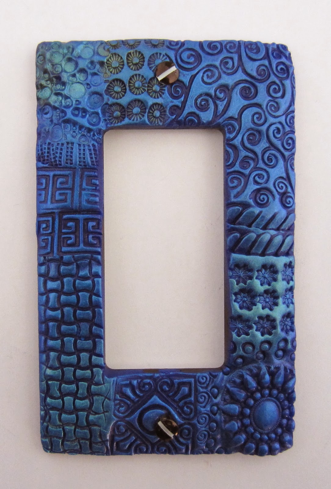 | "Sea Creatures" - this piece shimmers from green all the way to deep blue. The surface has a slight wave that mimics water. Here is "Sea Creatures" done in bronze, titanium, copper, and brass oxides. |